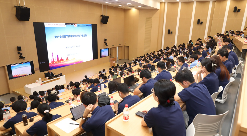 2025年9月8日上午,中国人民大学原副校长、国家金融研究院院长、中国资本市场研究院院长、国家一级教授吴晓求在人大东校区为财政金融学院2025级研究生新生讲授入学专业第一课,主题为“大历史视野下的中国经济与中国金融”,这是东校区本学期启用后财政金融学院第一堂专业课。财政金融学院副院长钱宗鑫教授主持了本次讲座,400多名2025级研究生新生共同聆听了吴晓求教授的精彩授课。